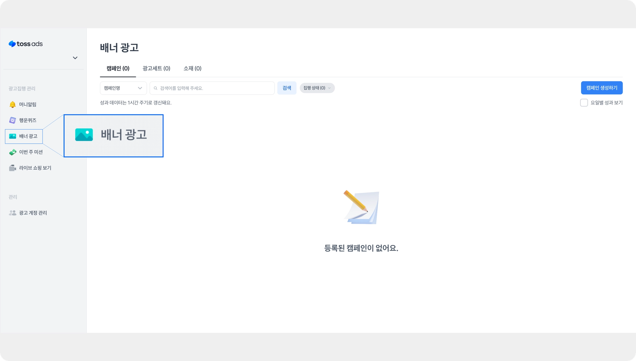 성과 데이터는 1시간 주기로 반영됩니다.