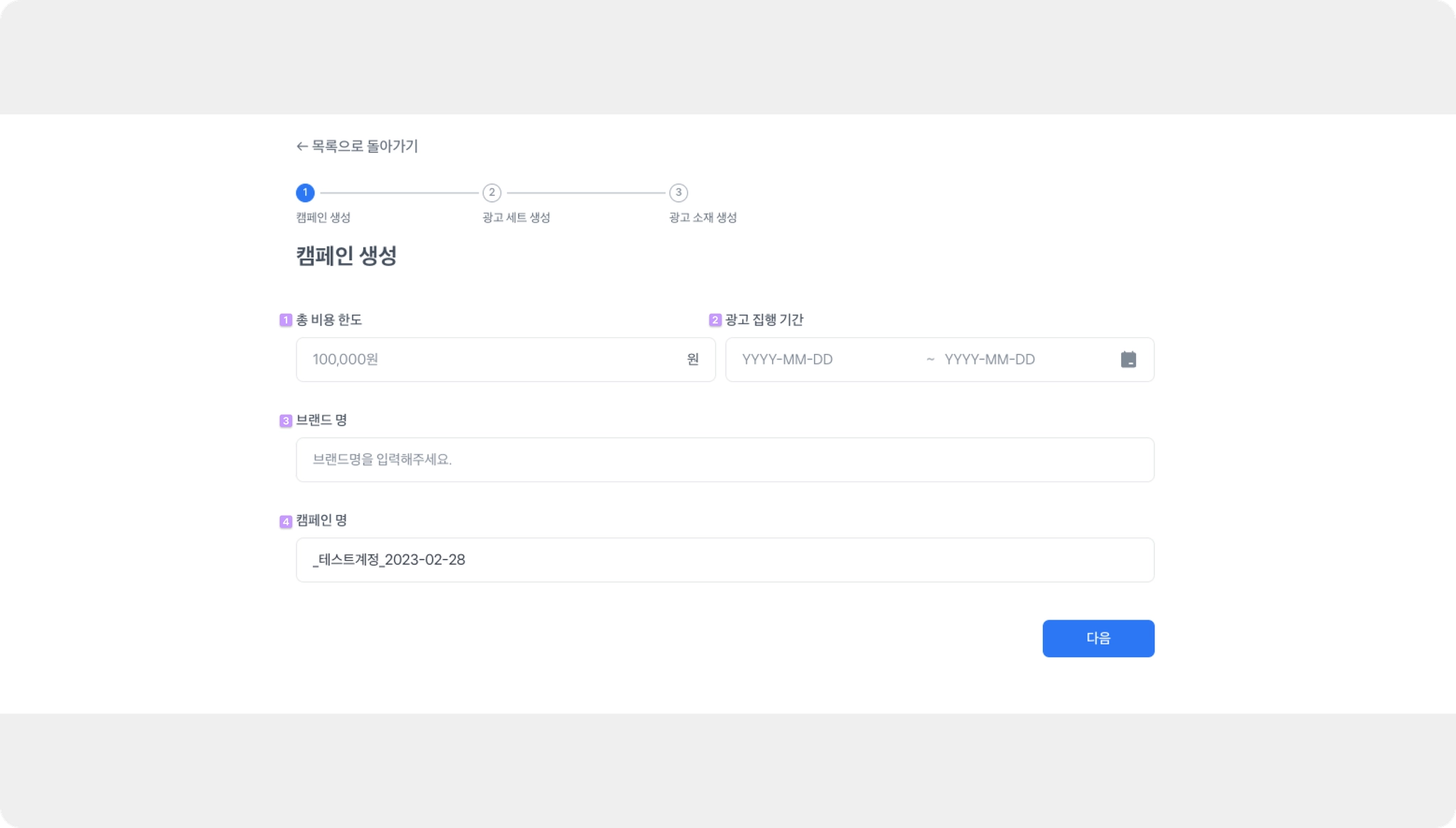 캠페인 명을 작성합니다.