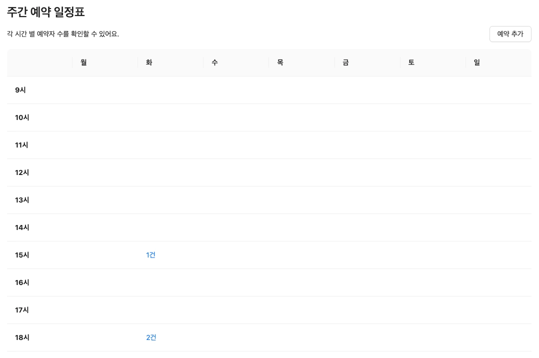 일정표 상단 우측에 “예약 추가” 버튼을 추가합니다.