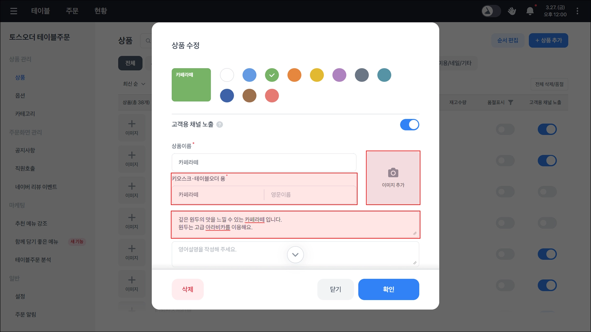 4. 테이블주문에 노출할 상품 이름, 이미지, 설명 등록하는 세부 방법