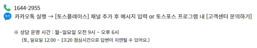 추가 문의 사항이 있으실 경우 토스플레이스 고객센터로 문의 부탁드립니다.