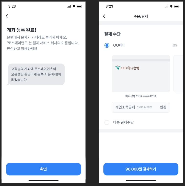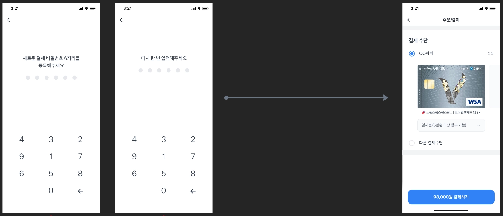 결제 비밀번호 생성 및 등록 완료 화면 입니다.