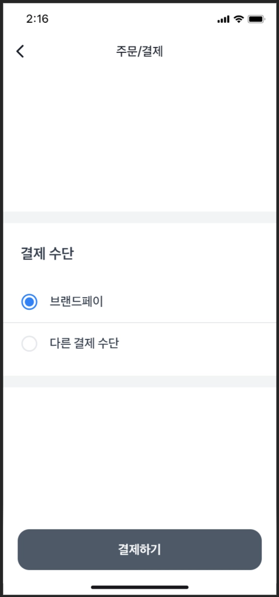 브랜드페이 앱이 연동된 쇼핑몰 주문서 화면 입니다.