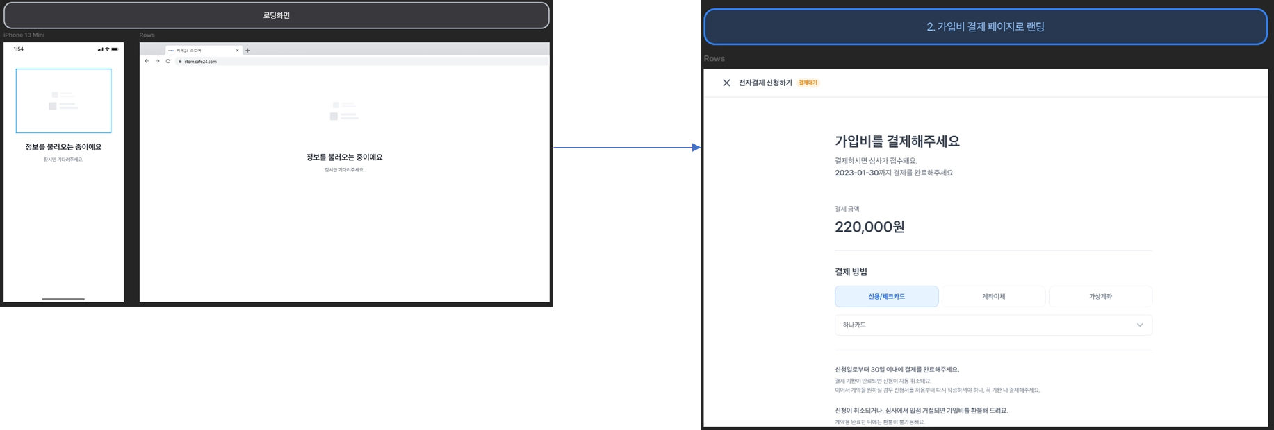 신청서를 제출하면 바로 가입비 결제 화면으로 이동하는데 가입비 결제 화면에서 이탈 후 다시 브랜드페이 앱 관리하기를 재 진입하면 가입비 결제 화면부터 다시 진행됩니다.