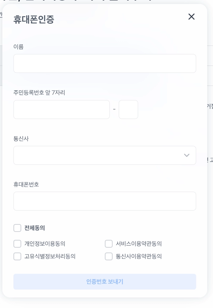 변경 신청인 확인을 위한 휴대폰 인증절차를 완료 해주세요.