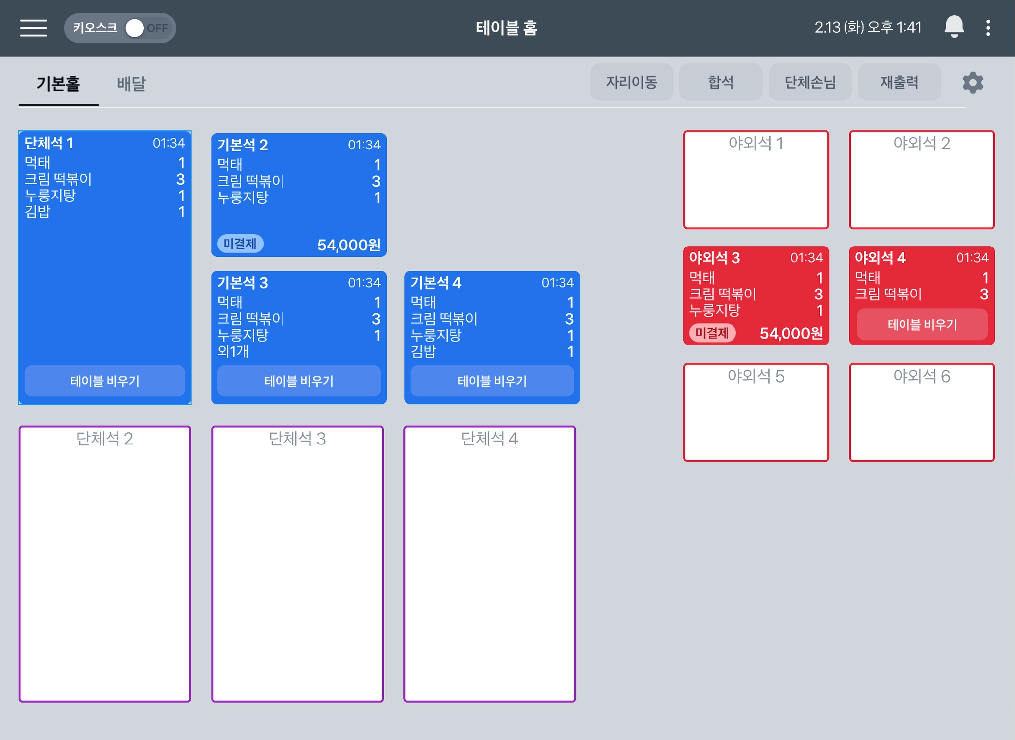 테이블오더에서 직접 결제한 경우 포스 해당테이블에 ‘테이블 비우기’ 버튼이 보여요