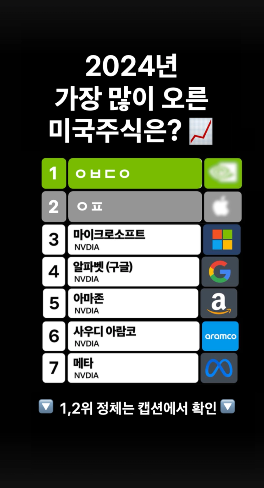 랭킹 이름은 초성 대신 ‘???’으로 하고, 종목 로고만 블러 처리하여 호기심 유발(”아, 이거 아는데?”)