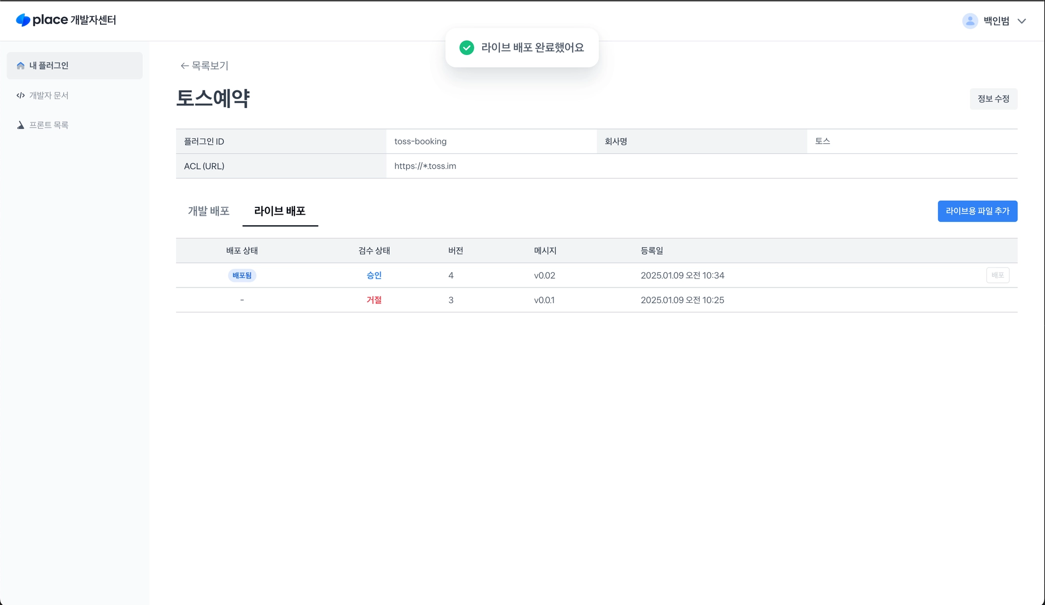 라이브배포는 검수 과정이 필요합니다. 플러그인이 등록되면 검수요청 버튼을 눌러주세요.