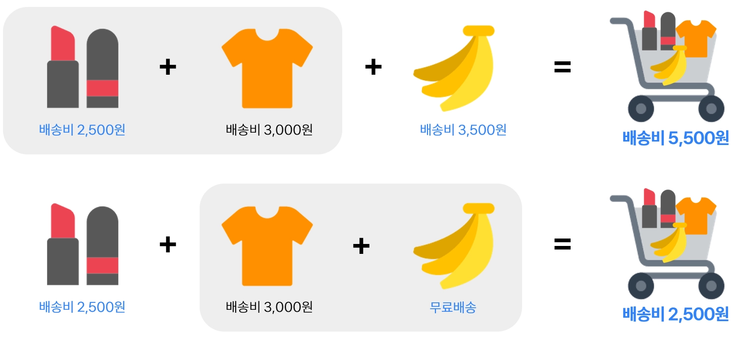 배송비 묶음이란, 구매자가 서로 다른 배송비가 적용된 상품을 함께 구매할 때 한 번의 배송비 결제로 주문할 수 있는 기능이에요.