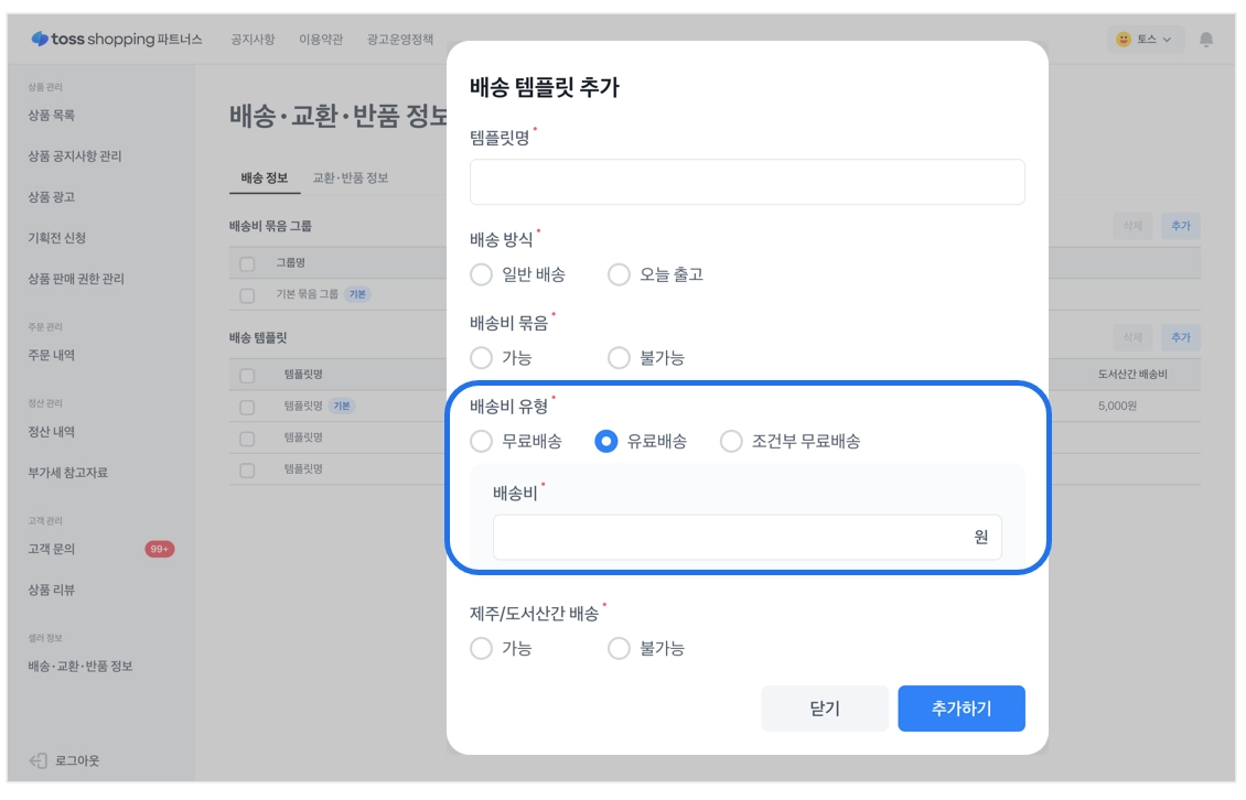 가이드를 통해 토스쇼핑 파트너스에서 배송정보 등록, 유료배송, 조건부 무료배송 설정 방법을 확인할 수 있습니다.