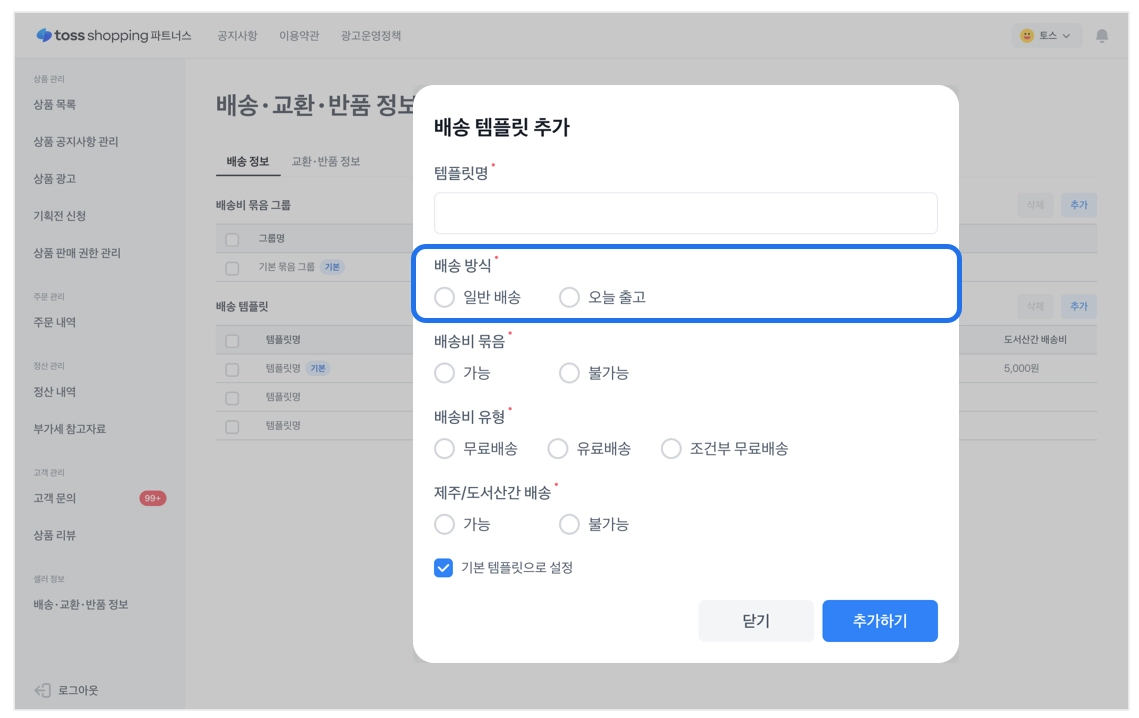 교환·반품 배송 템플릿 적용하기
