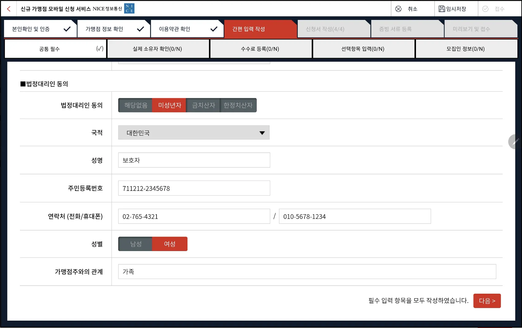 가맹점주의 신분증의 내용과 다를 경우, 해당 입력란에서 직접 수정해 주세요.