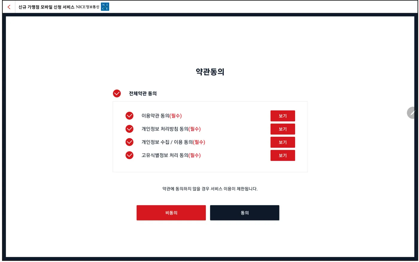 각 동의 사항에 대해서는 각 항목별로 우측의 보기 버튼을 눌러서 세부 내용을 확인할 수 있어요.