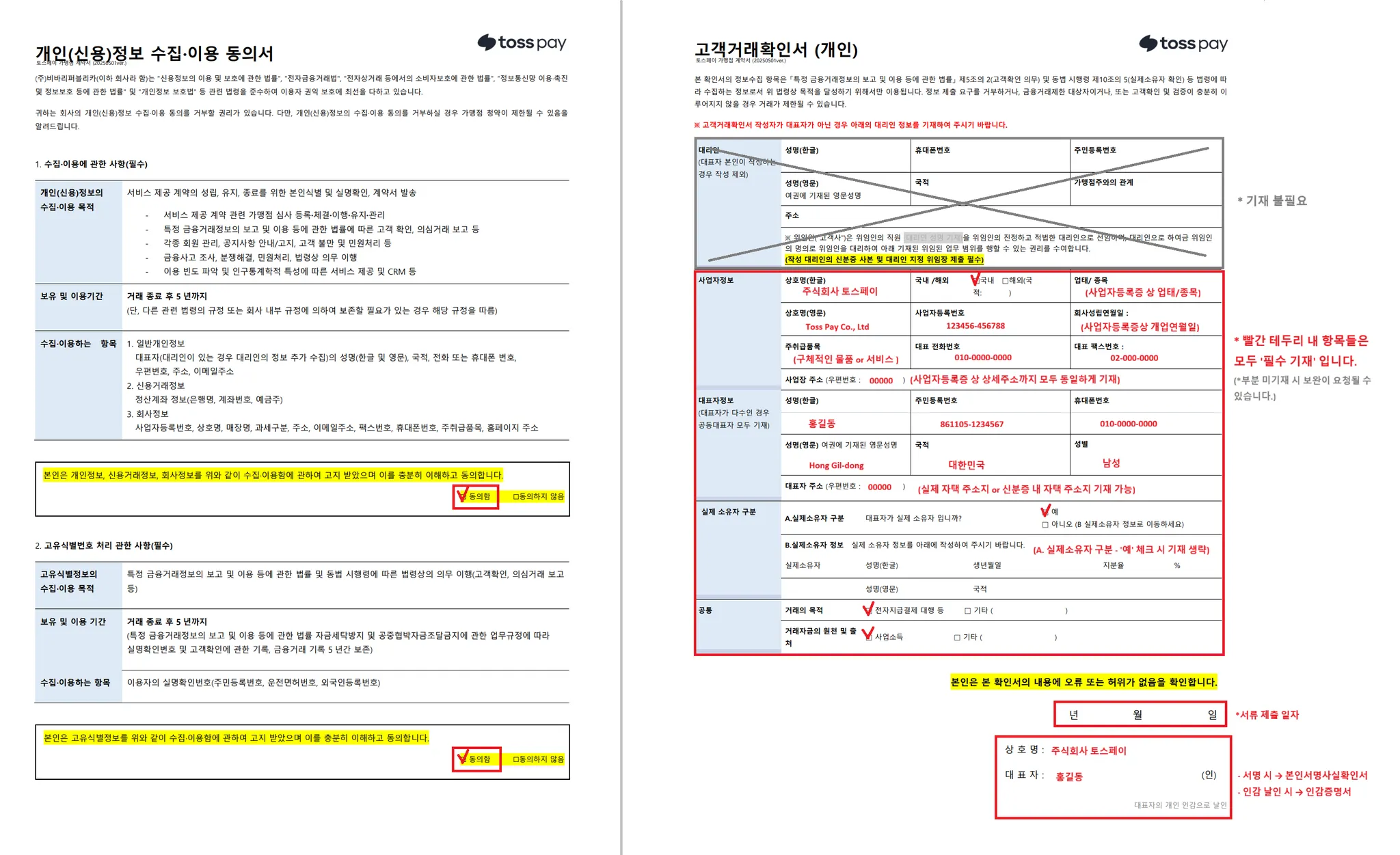 [개인(신용)정보 수집 이용 동의서 및 고객거래확인서 (법인사업자)]
