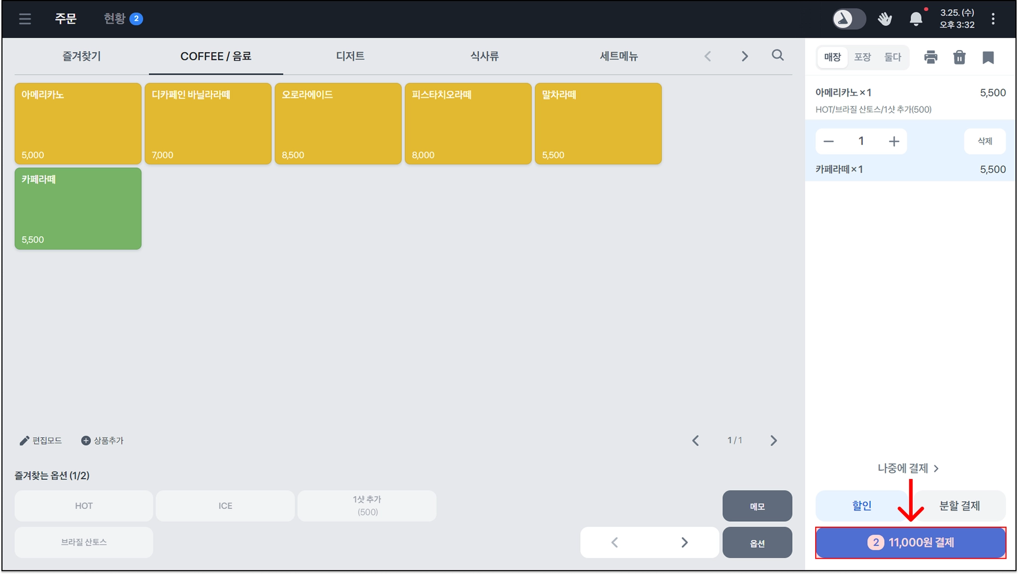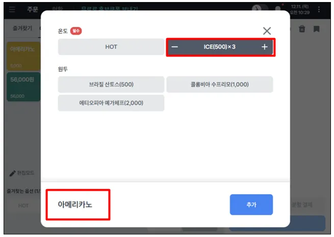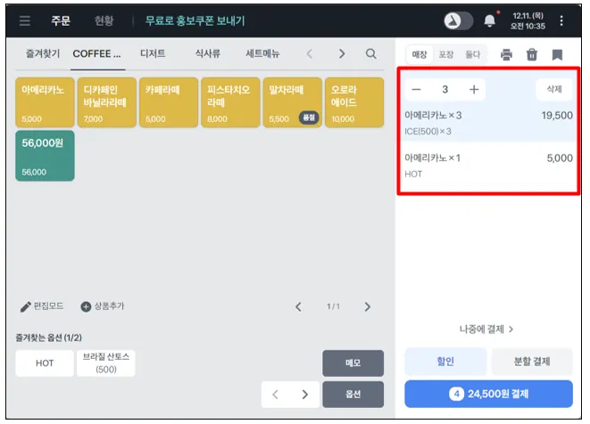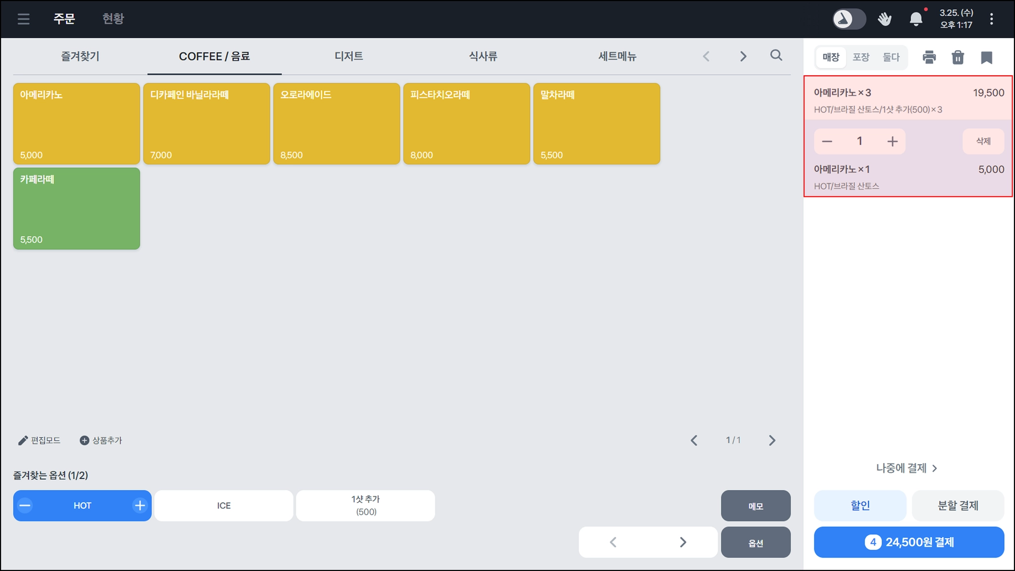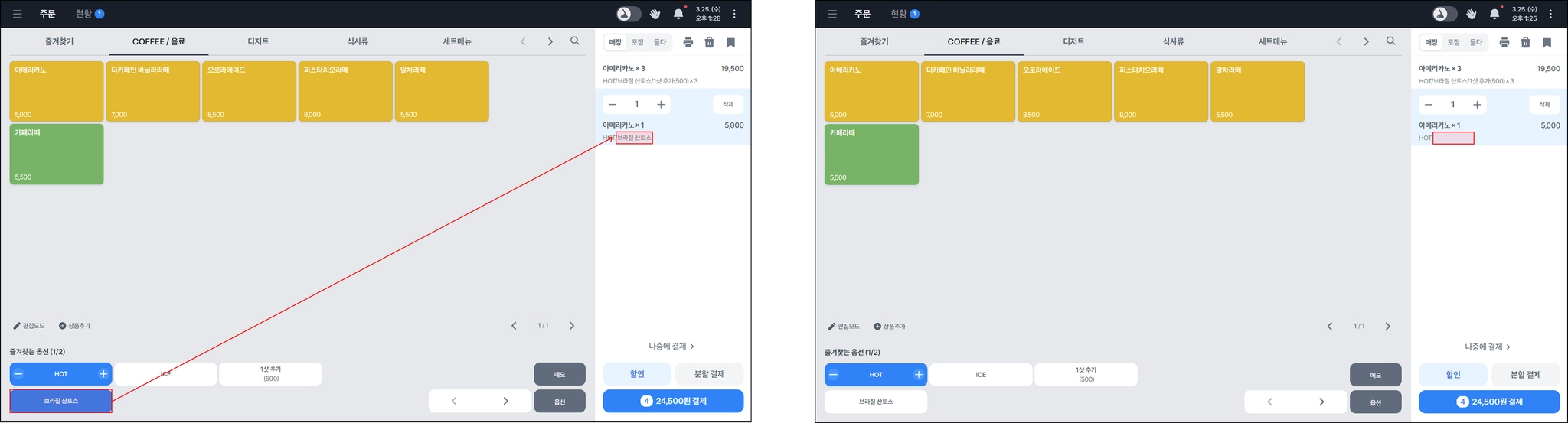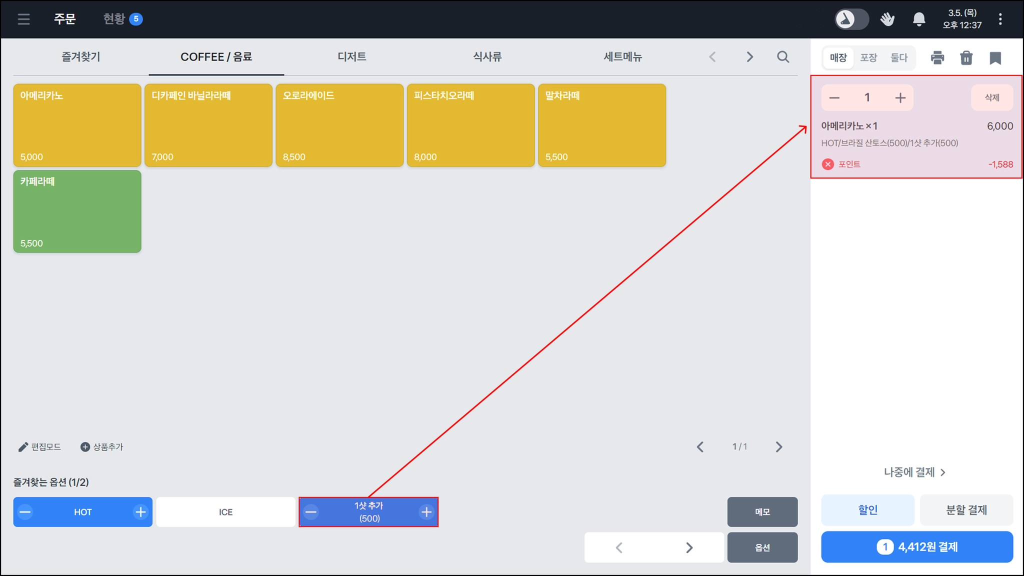 ex 아메리카노 총 4잔 주문 시(ICE 아메리카노 +HOT 아메리카노 ) 총 주문 수량을 더해주세요