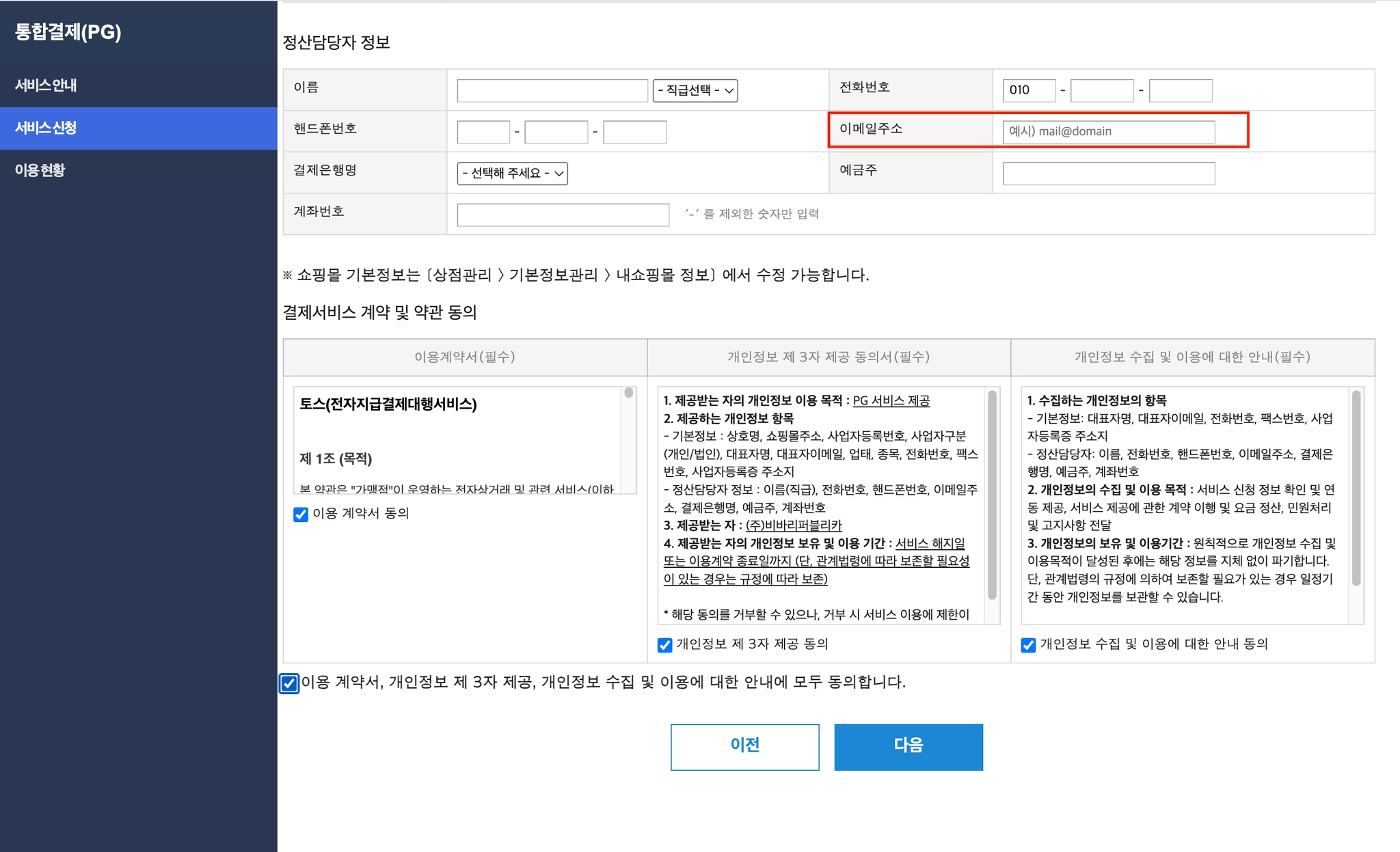정산 담당자 정보를 입력해 주세요.