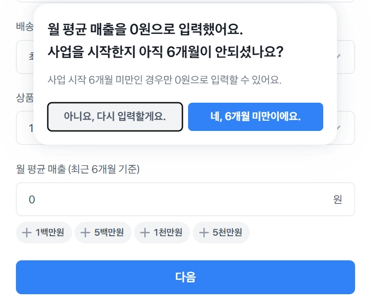 ์์ 6๊ฐ์ ๋ฏธ๋ง์ธ ๊ฒฝ์ฐ๋ง ์ ํ๊ท ๋งค์ถ์ 0์์ผ๋ก ์