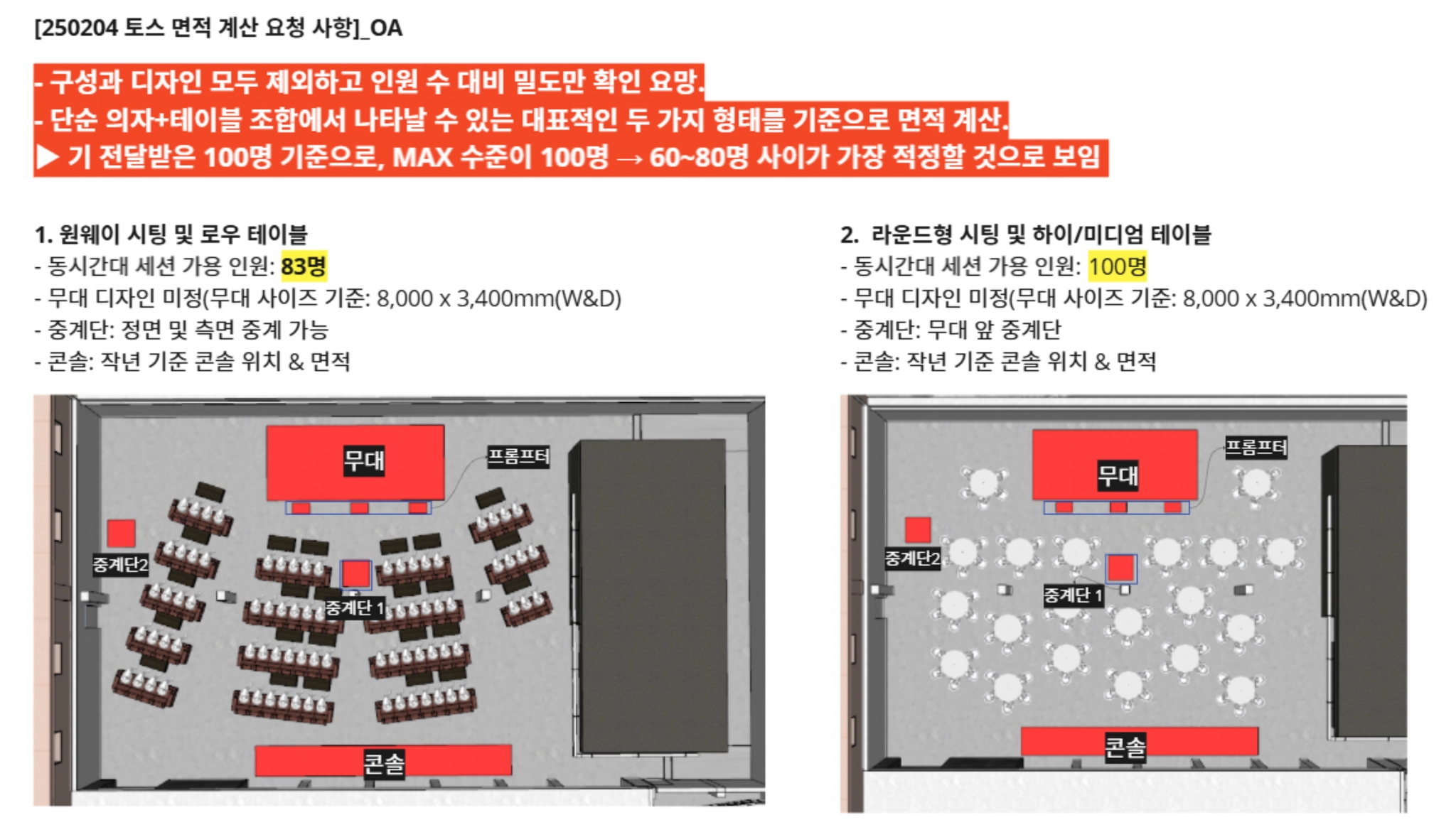 → 동반이 없을 경우, 초대 인원을 좀더 늘려서 max 150명 목표