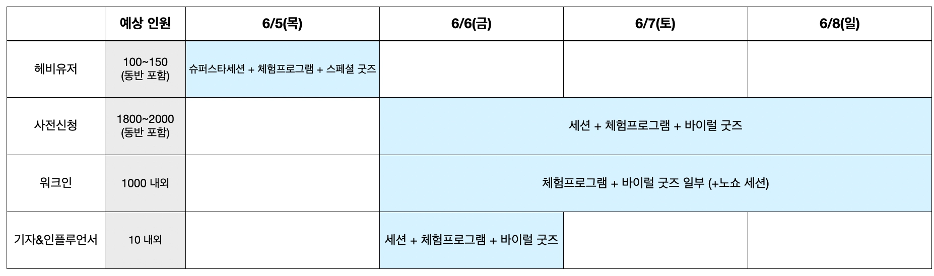 예상 초대 유저 & 프로그램 개요