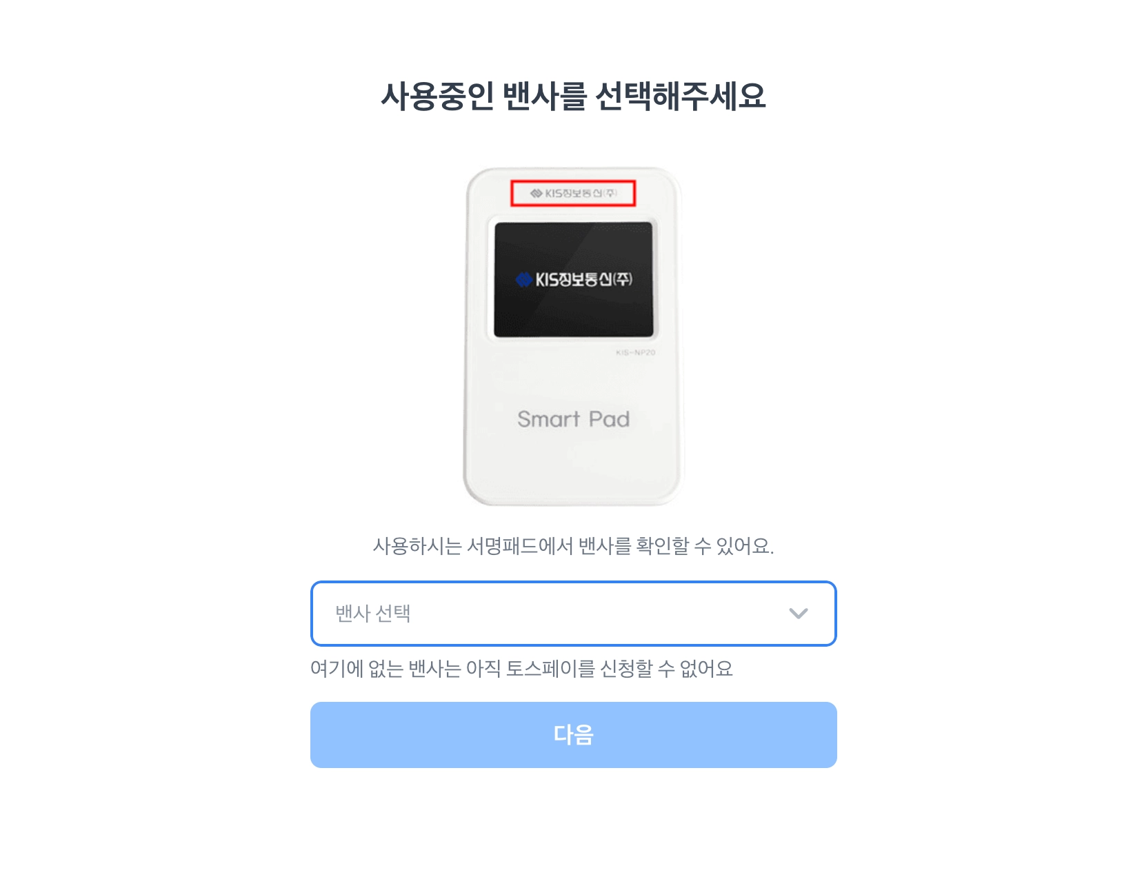 목록에 없는 밴사는 아직 토스페이를 신청할 수 없어요.