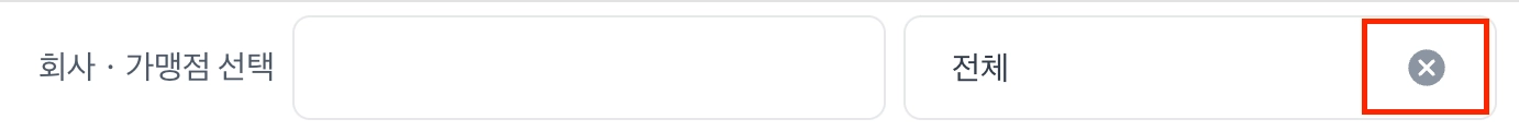 *특정 가맹점 선택 시 '전체' 문구 옆 X 버튼 클릭 후 선택이 가능합니다.