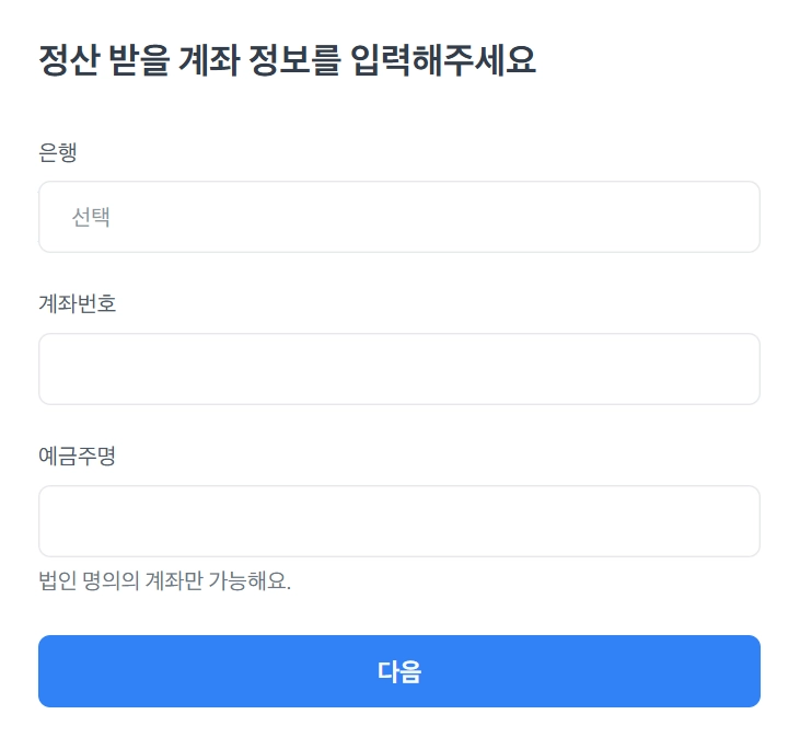 정산받을 계좌를 입력해 주세요.