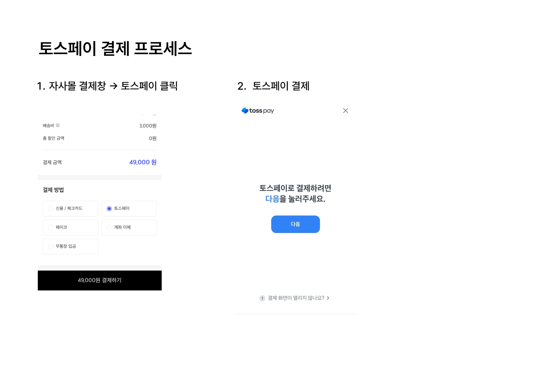 토스페이는 자사몰 결제창 진입점 없이 진행되는 타사 간편구매 방식과 달리 로그인 후 결제가 가능한 시스템으로,