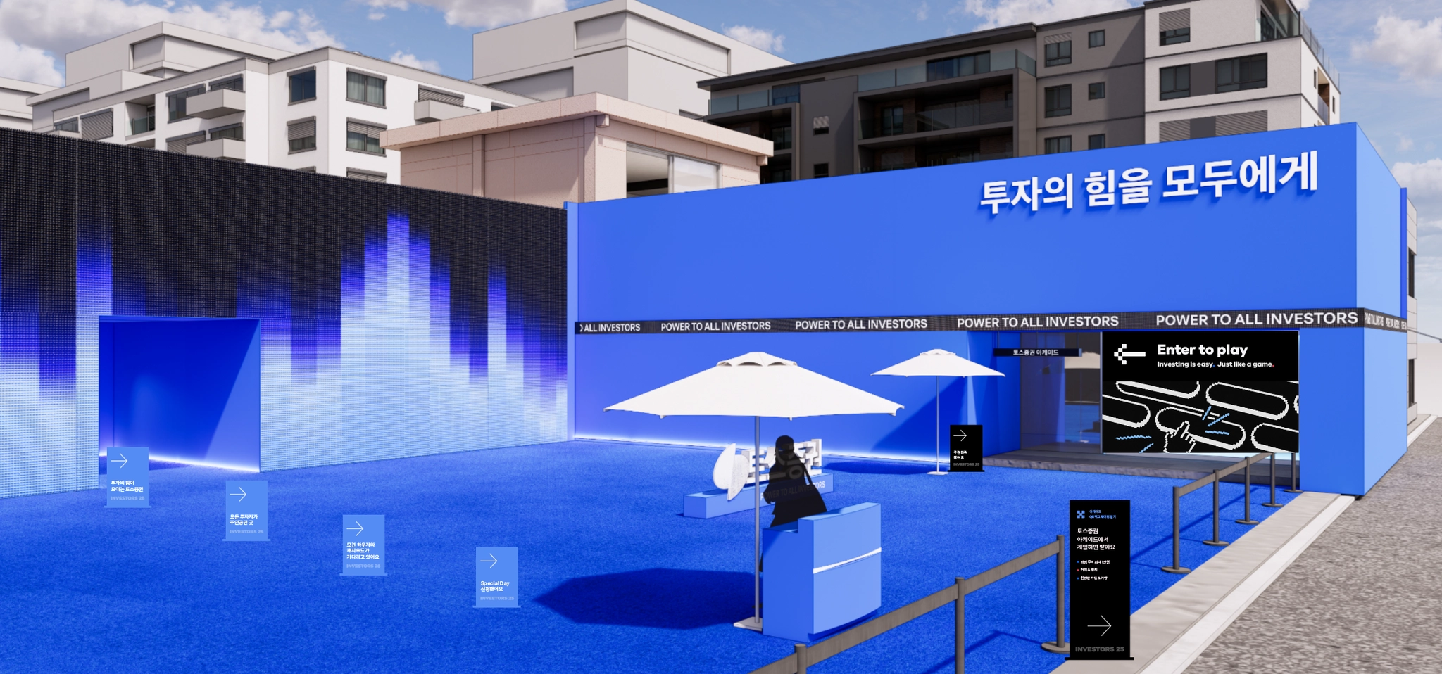 세션홀은 blue aster, 아케이드는 black으로 사이니지 색상 구분