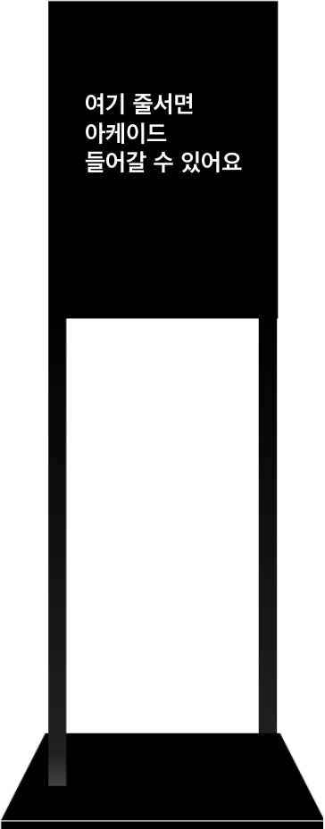 역할: 세션홀 입장과는 별도로 가장 전면에서 아케이드에 대한 안내와 대기 신청을 하도록 하는 역할 (대기 등록 후 out)