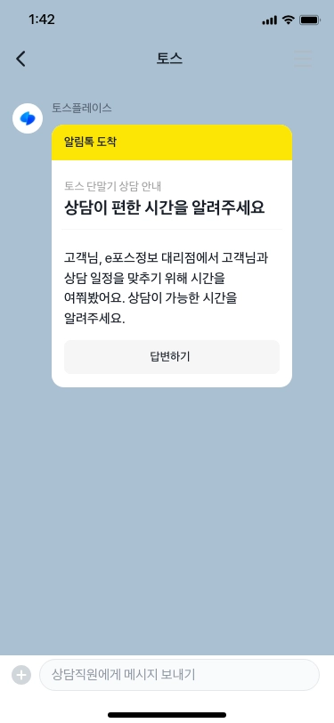 상담 시간 예약은 고객님 당 1번만 보낼 수 있어요.