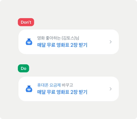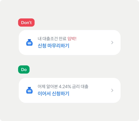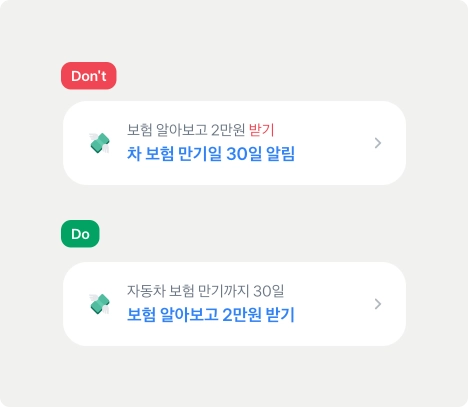 내가 왜 이 인텔리에 노출됐는지, 유저가 한 번에 알 수 있게 쓰는 것이 좋아요.