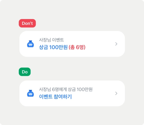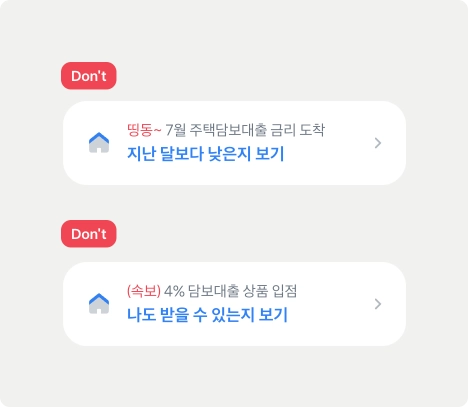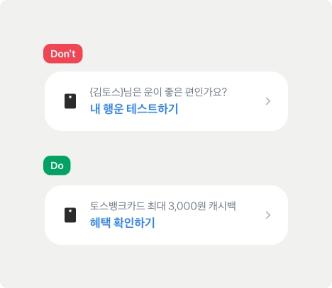 자극적인 광고 표현으로 유저 경험의 첫인상을 해치지 않도록 특히 주의해주세요.