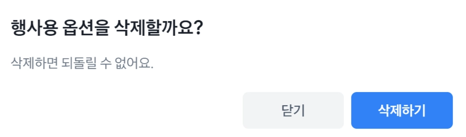 이용이 끝난 행사용 옵션은 삭제할 수 있어요