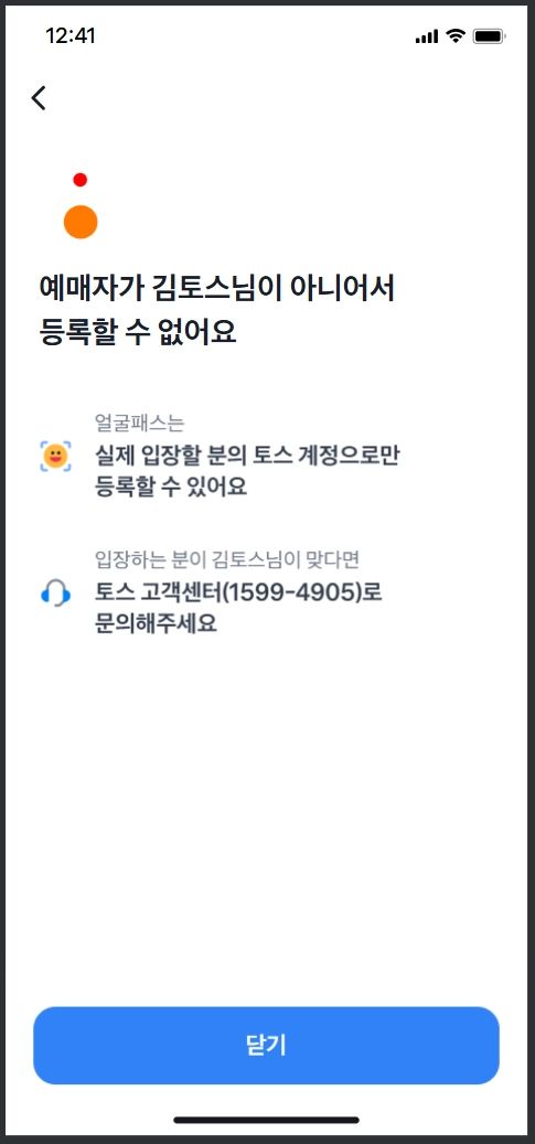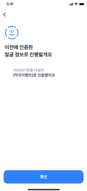 이전에 다른 얼굴로 등록하신 적이 있어서 본인확인이 필요해요.