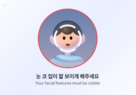 “눈 코 입이 잘 보이게 해주세요.” / “정면을 바라봐주세요” / “눈을 크게 떠주세요.”