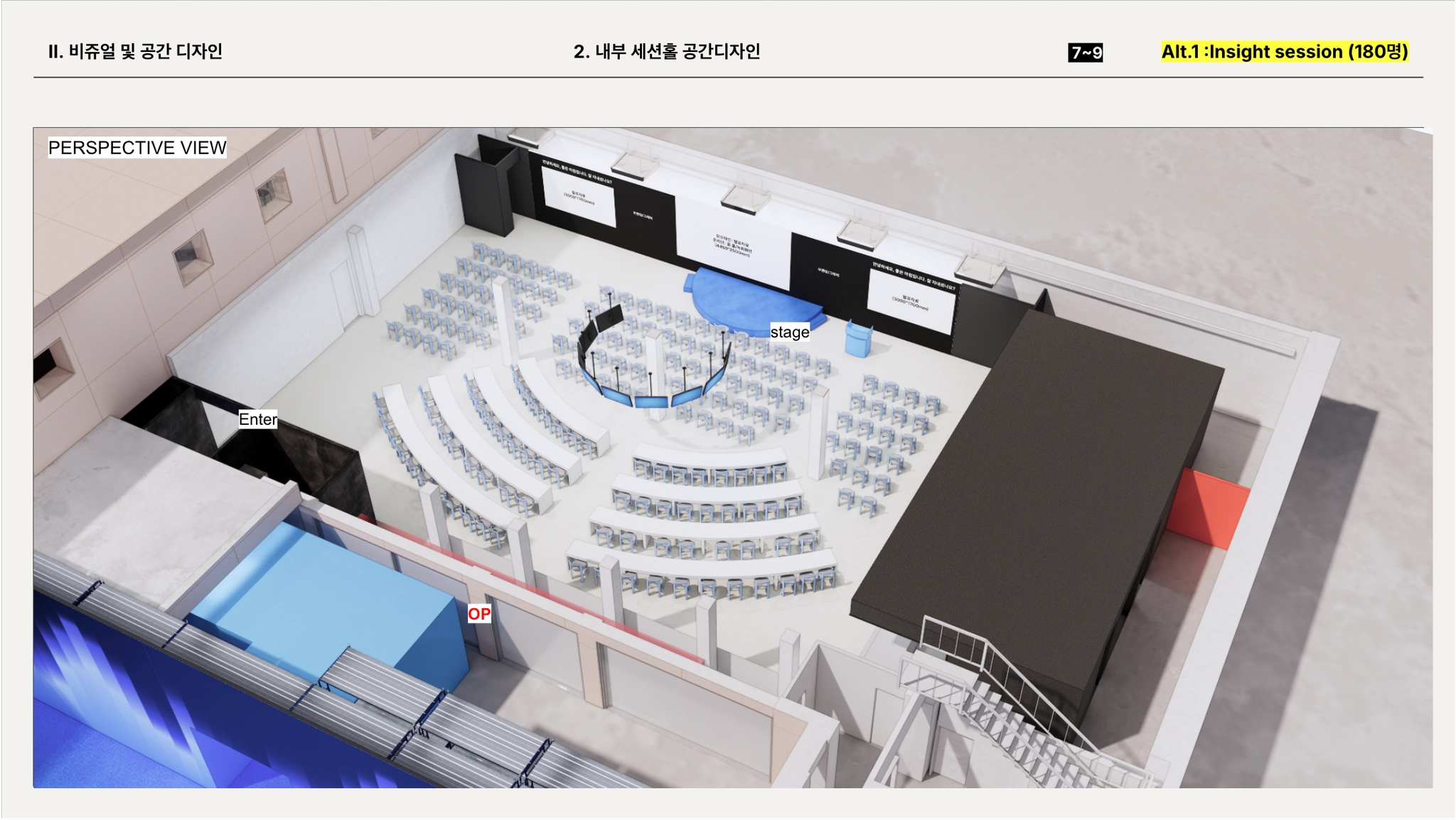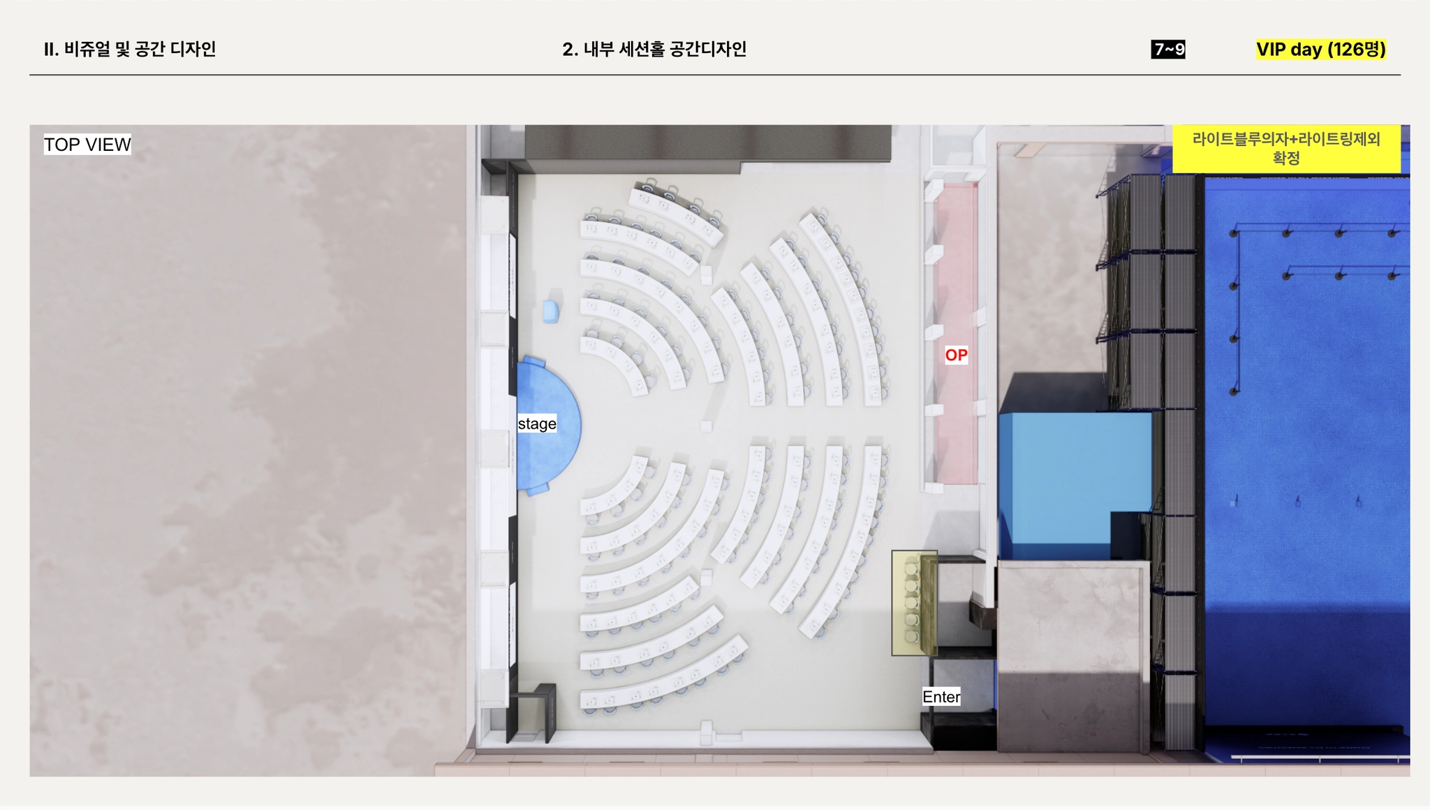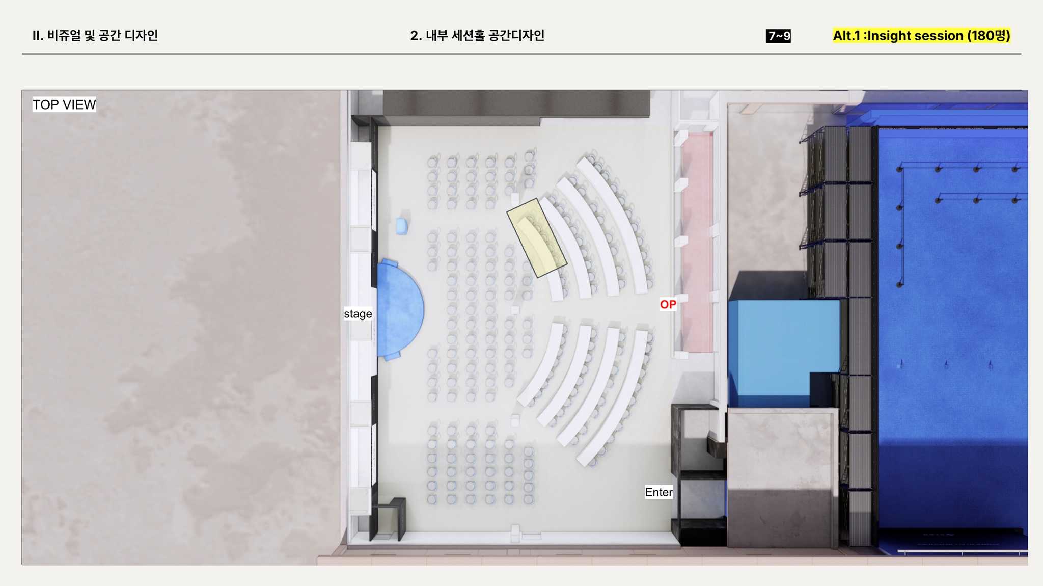 세션홀 공간 구성 + 인테리어