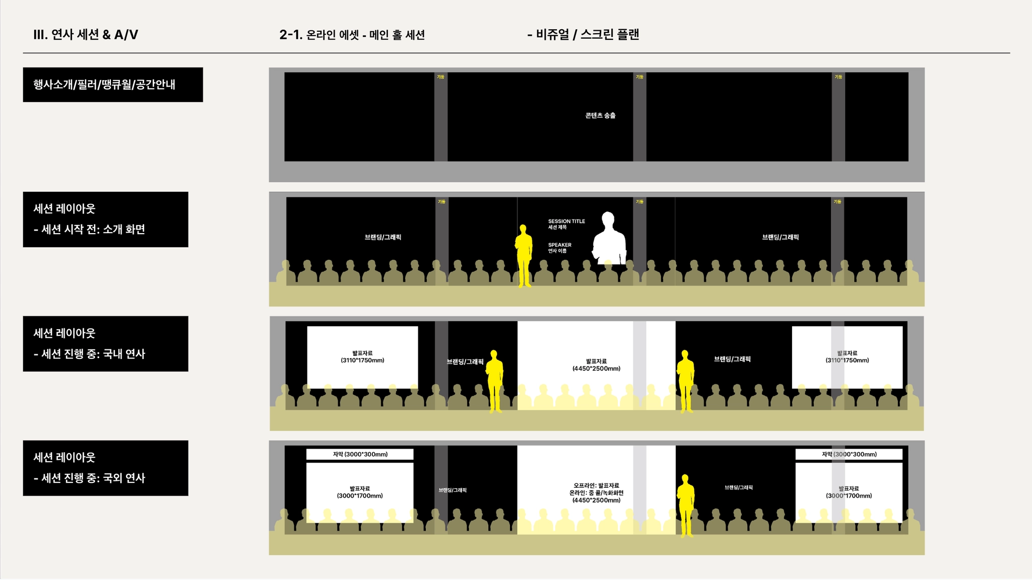 *연사자가 가운데 무대에서 발표하기 때문에 와이드 스크린 시 화면을 가리지 않도록 주의 필요