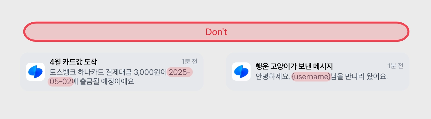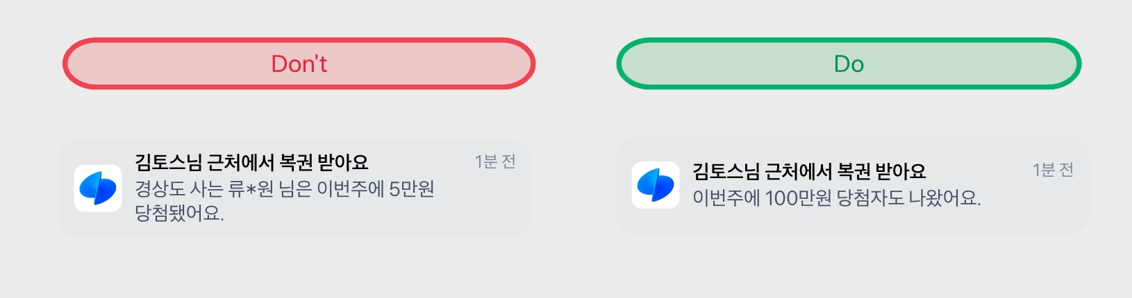 자극적인 키워드는 시선을 끌 수는 있지만, 사용자를 놀라게 할 수 있어요. 특히 토스는 금융과 자산을 다루는 서비스이기 때문에, 사망, 범죄, 정치 등 민감한 소재는 훨씬 더 조심스럽게 다뤄야 해요.