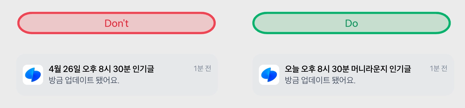 전혀 상관없는 타인의 정보가 푸시에 등장하면, 의미 없이 낯선 정보를 받았다고 느낄 수 있어요. “누가 뭘 했는지”보다 “왜 나에게 이 정보를 알려주는지”가 더 중요해요.