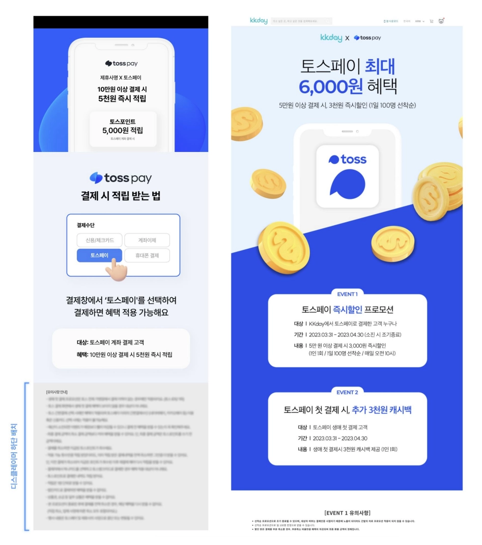 행사 내용은 토스페이 및 0000(브랜드명기재)의 사정으로 중단 또는 변동될 수 있어요.