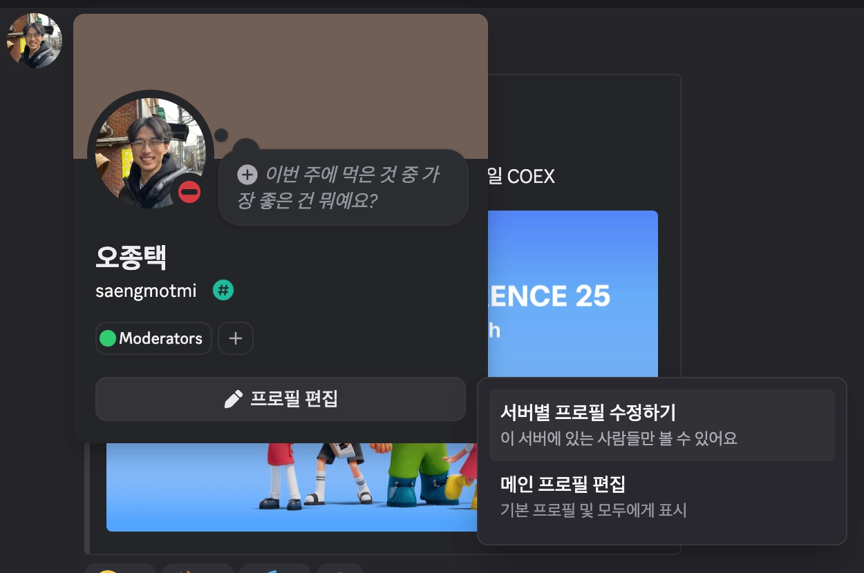 ๋์ค์ฝ๋์์๋ ์๋์ ๊ฐ์ ํ๋์ด ์ด๋ค์ง ์์ ์ด์์.