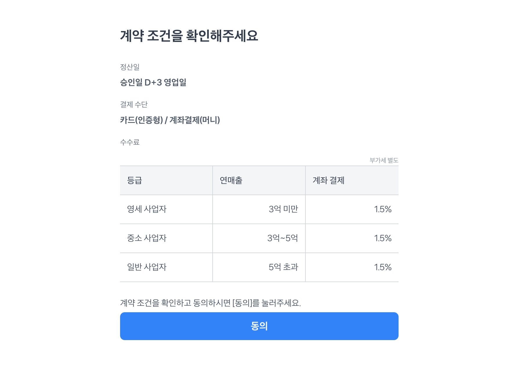 개인사업자의 경우 예금주명과 대표자명이 일치해야 해요.