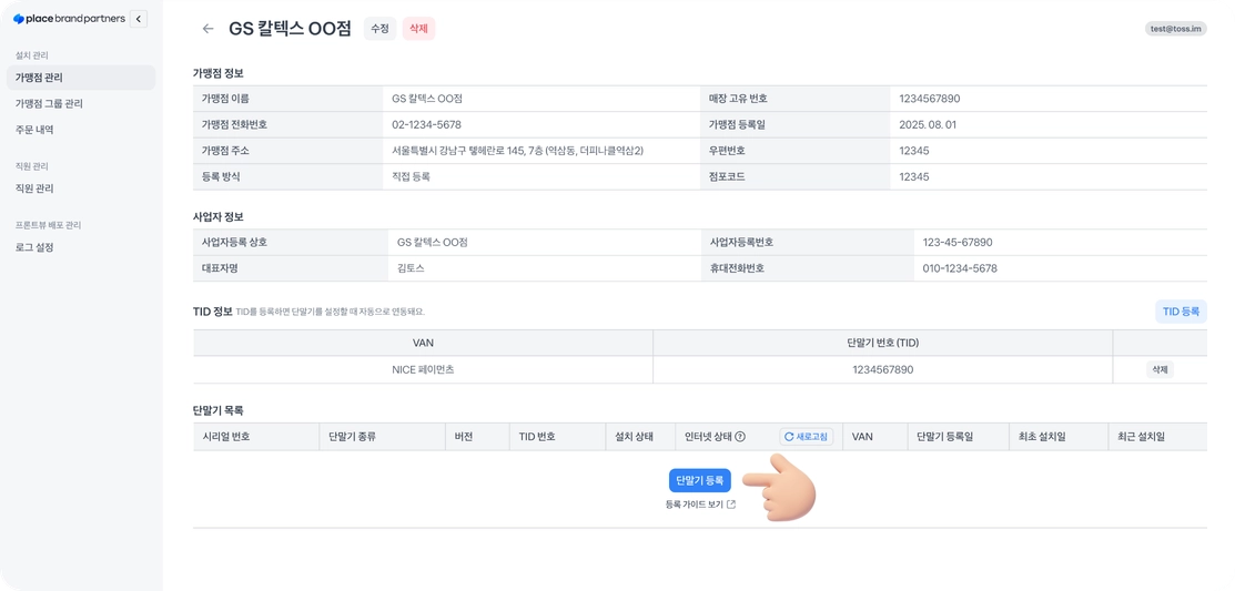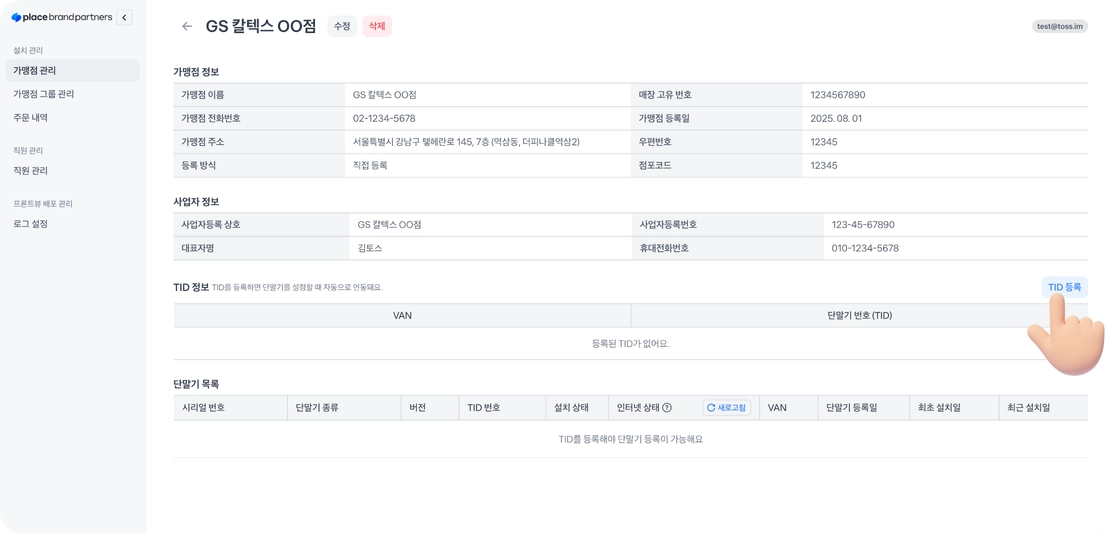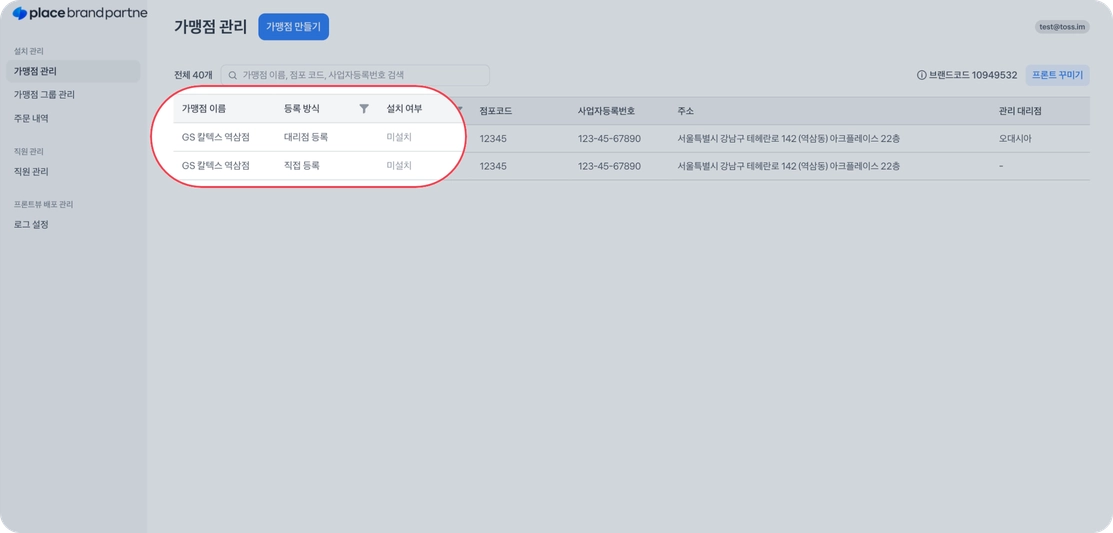 직접 등록: 토스플레이스 브랜드파트너스에서 직접 가맹점을 생성한 경우