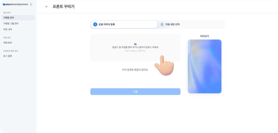 보유 가맹점에 등록할 배경화면 이미지를 업로드해 주세요.
