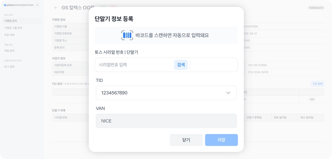 TID 등록이 끝나면 단말기 등록이 가능해요.