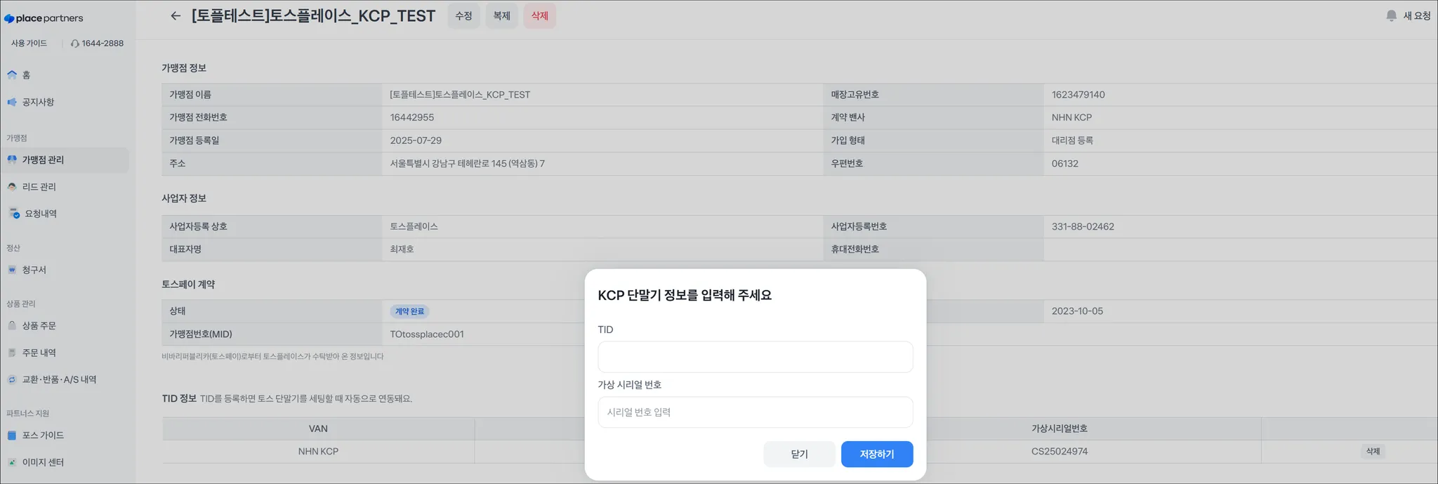 플레이스 파트너스 매장 정보 접속 → TID 등록 → 위 TID 값 입력