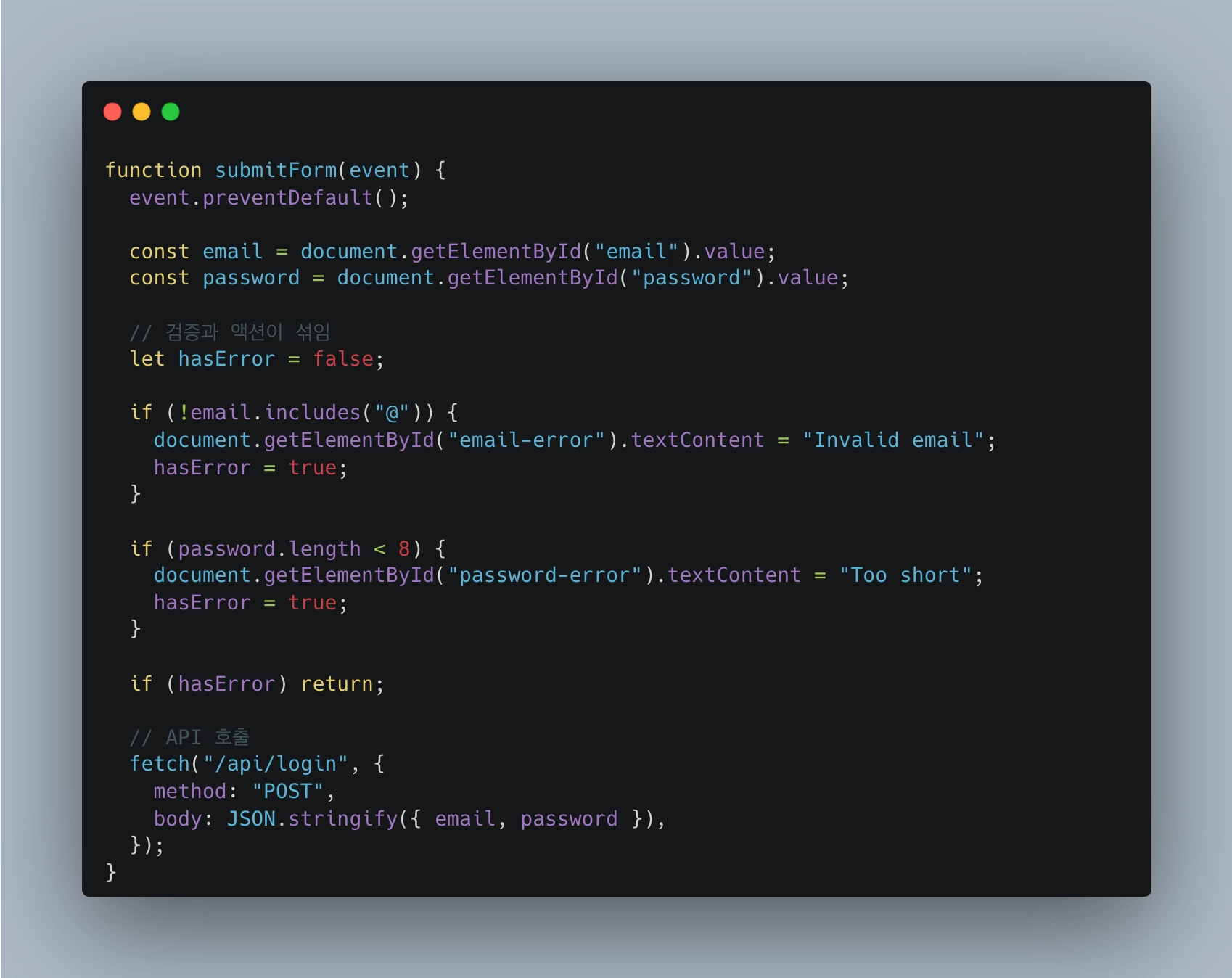 ex2. “Form을 Submit 하는 함수가 복잡해서 확실한 영역과 불확실한 영역을 분리해야겠어.”