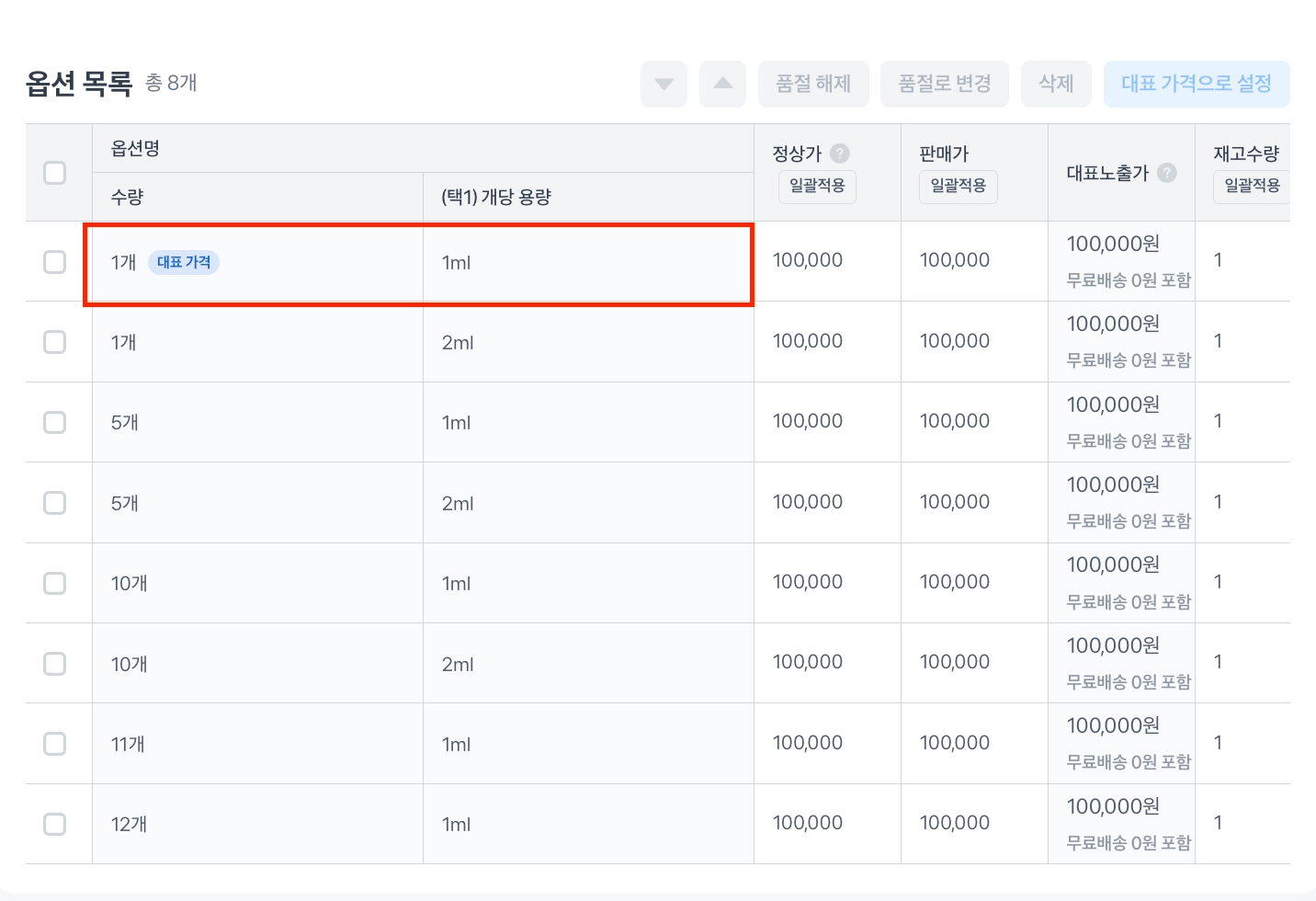 대표가격(옵션) 확인하는 방법