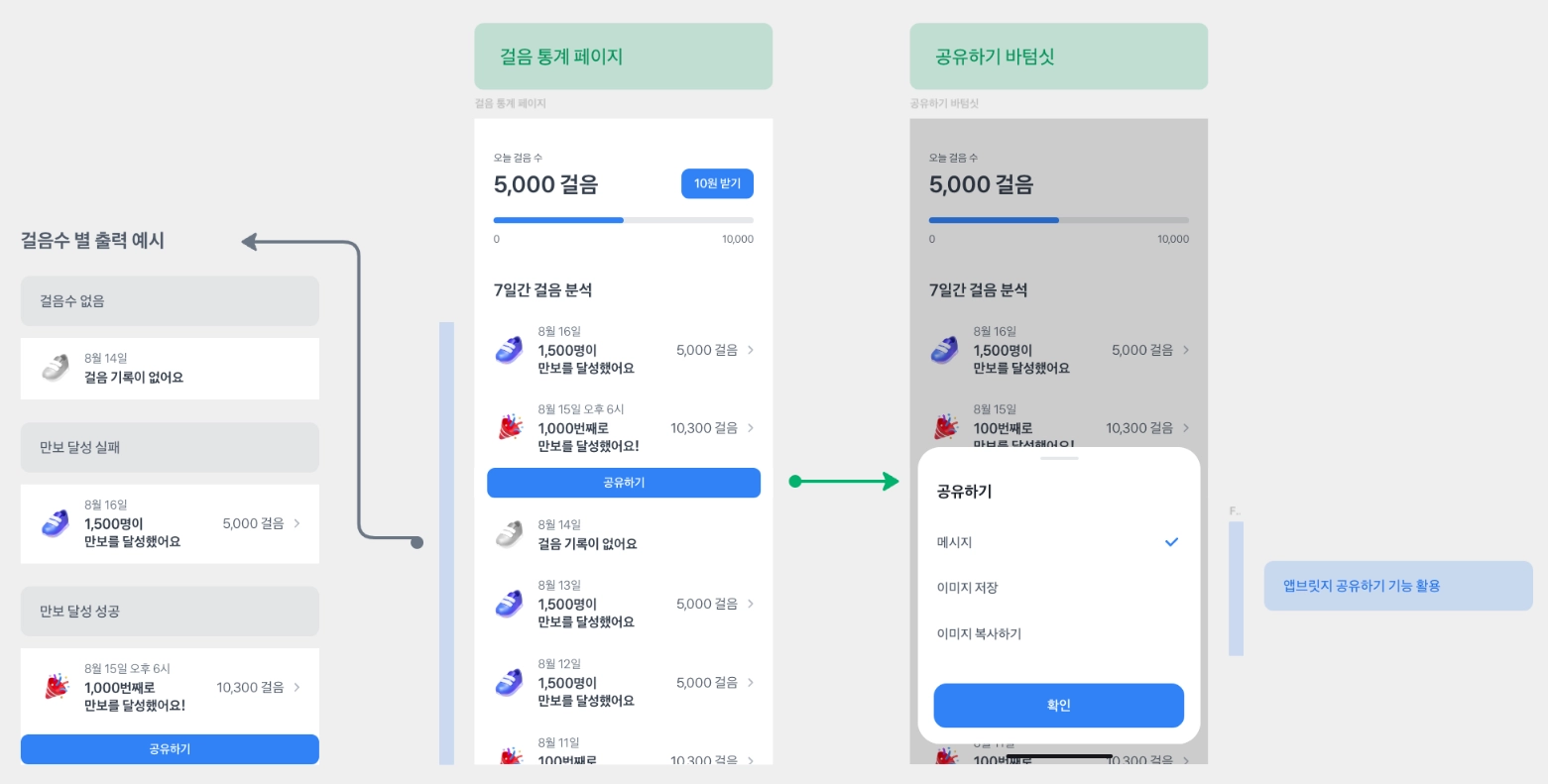 만보 달성에 성공한 경우 목록 하단에 공유하기 버튼을 추가해주세요.
