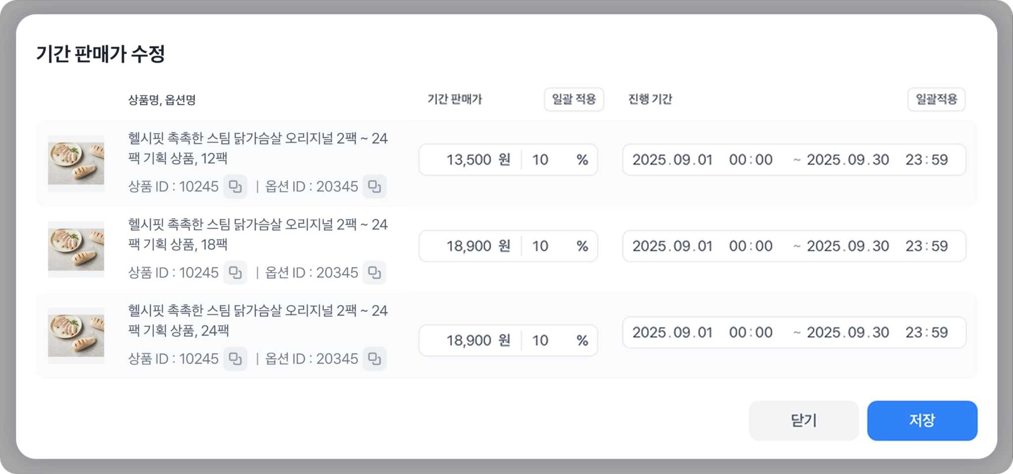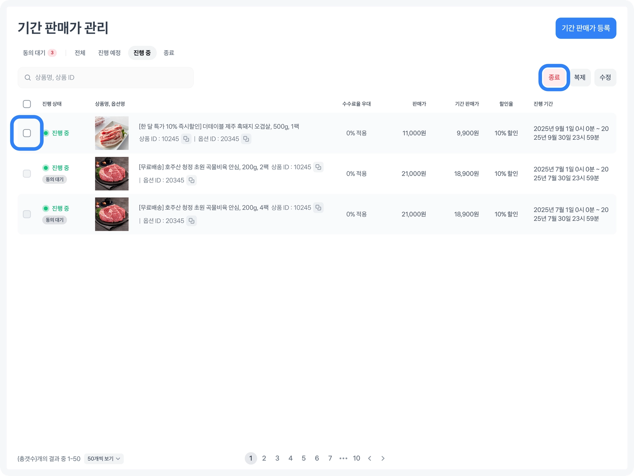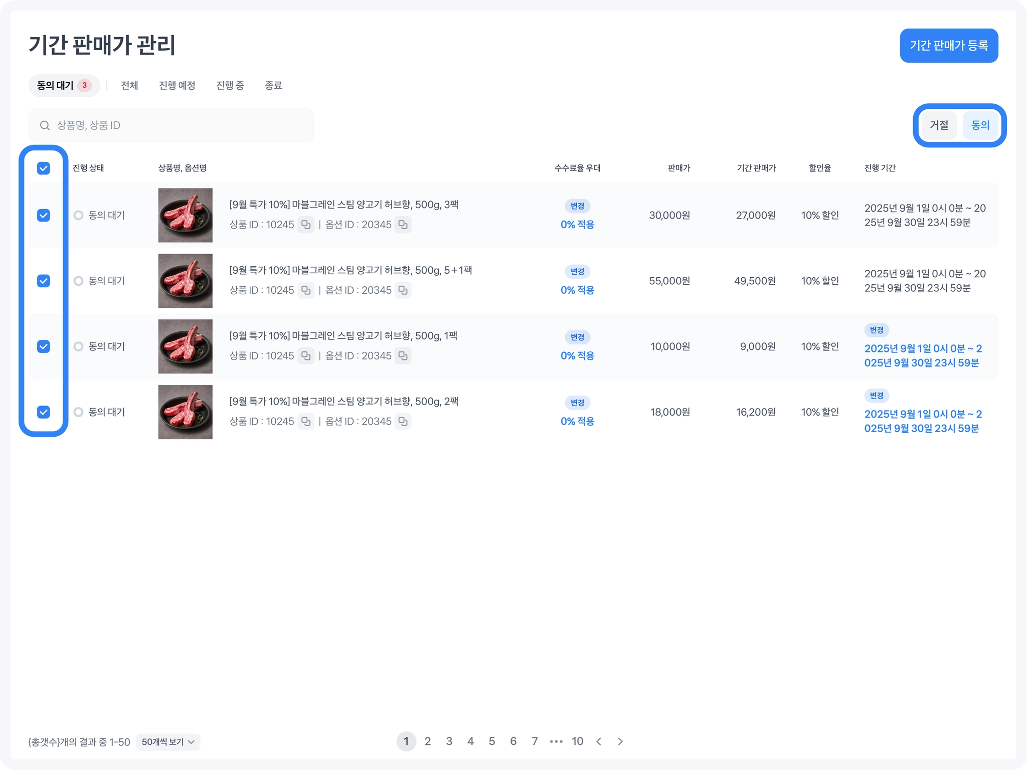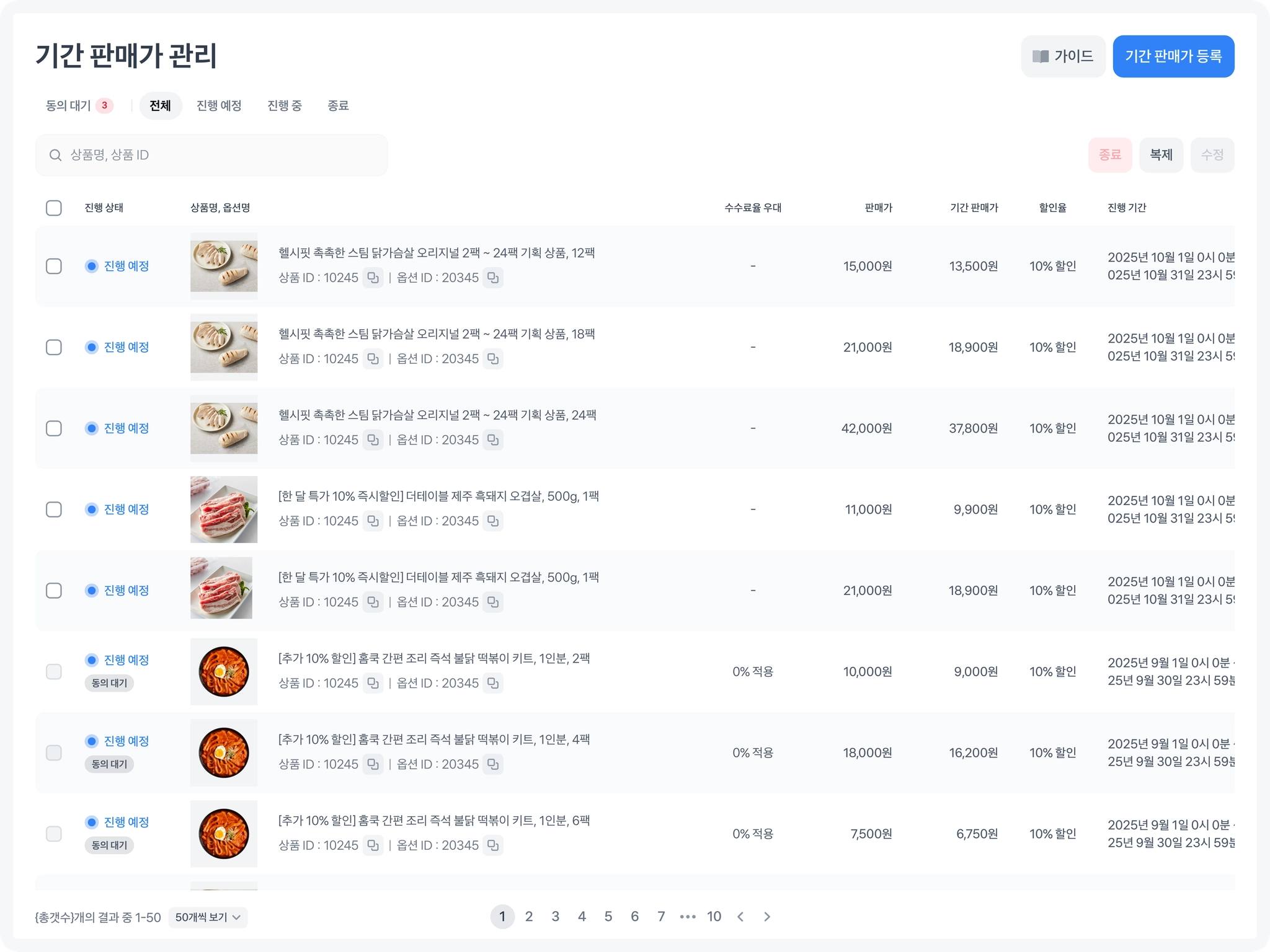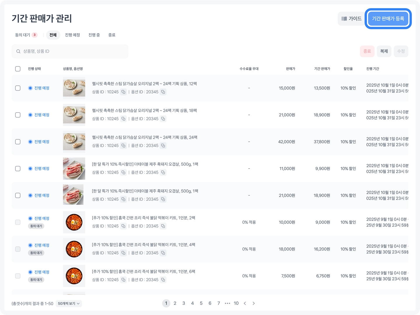 2. 기간 판매가 등록 방법